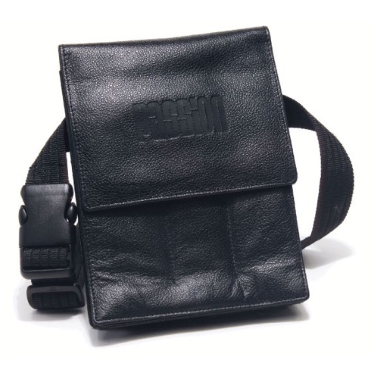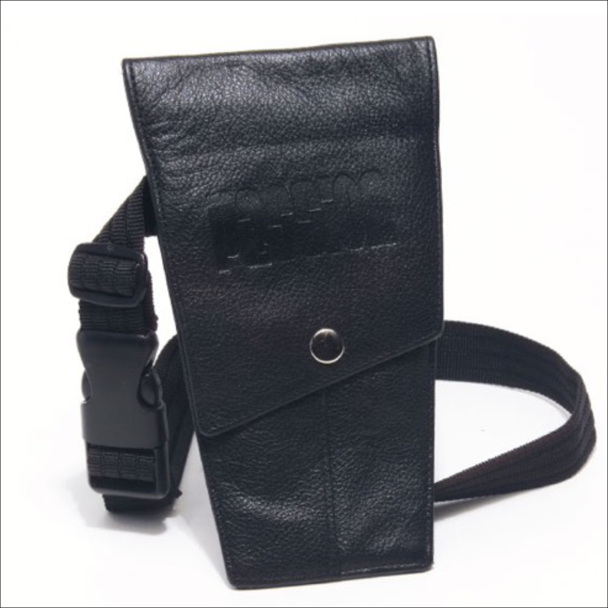 Classic shaped genuine leather pouch with cover. Cover can be folded over while you work for less hassle. Compact holding compartment has 3 scissor pockets and 1 large comb pocket. Adjustable 1 size fits all belt can be worn around the waist or shoulder. Strong and simple construction out of buttery soft genuine leather.