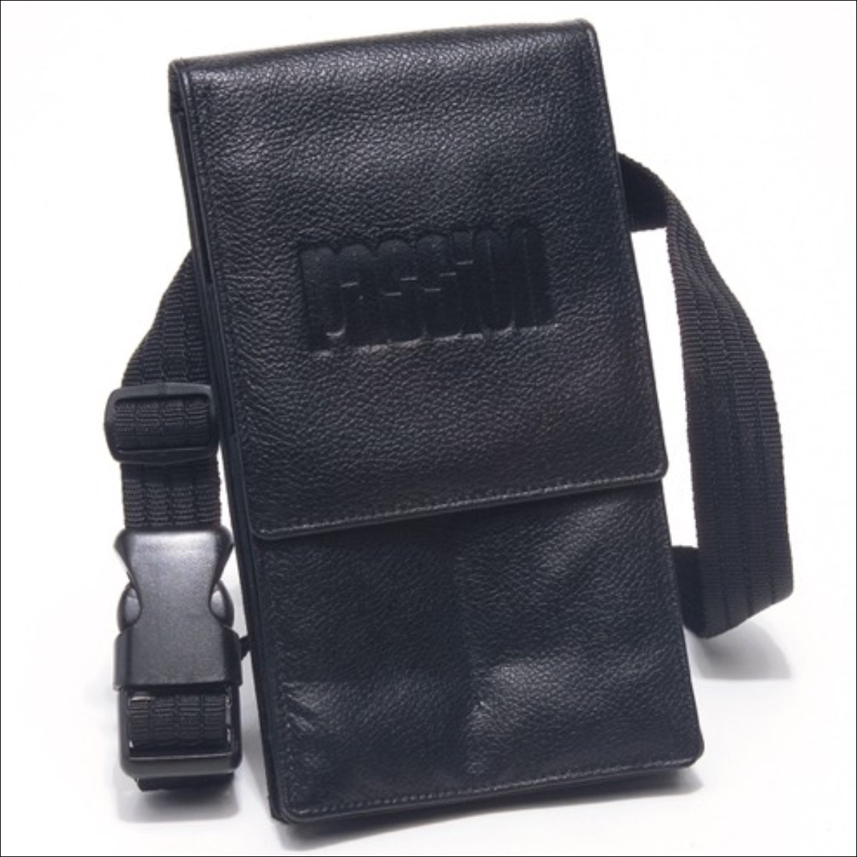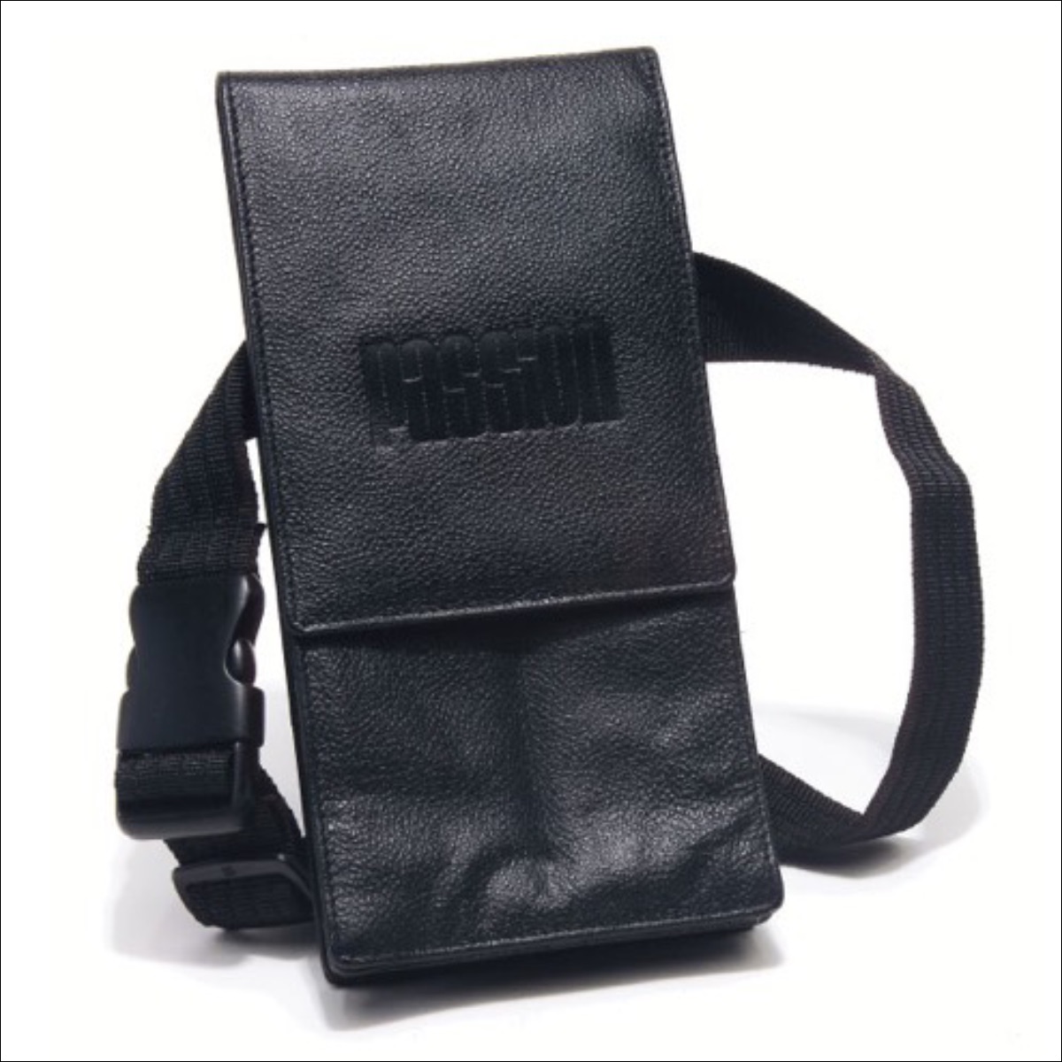 Popular padded leather pouch with cover and adjustable 1 size-fits-all belt to be worn around the waist or shoulder. The secure cover protects your tools while travelling but can be folded back while you work. Securely holds up to 6 scissors and also has 1 large comb pocket. Extra long size suited for securely storing long cutting and tail combs.